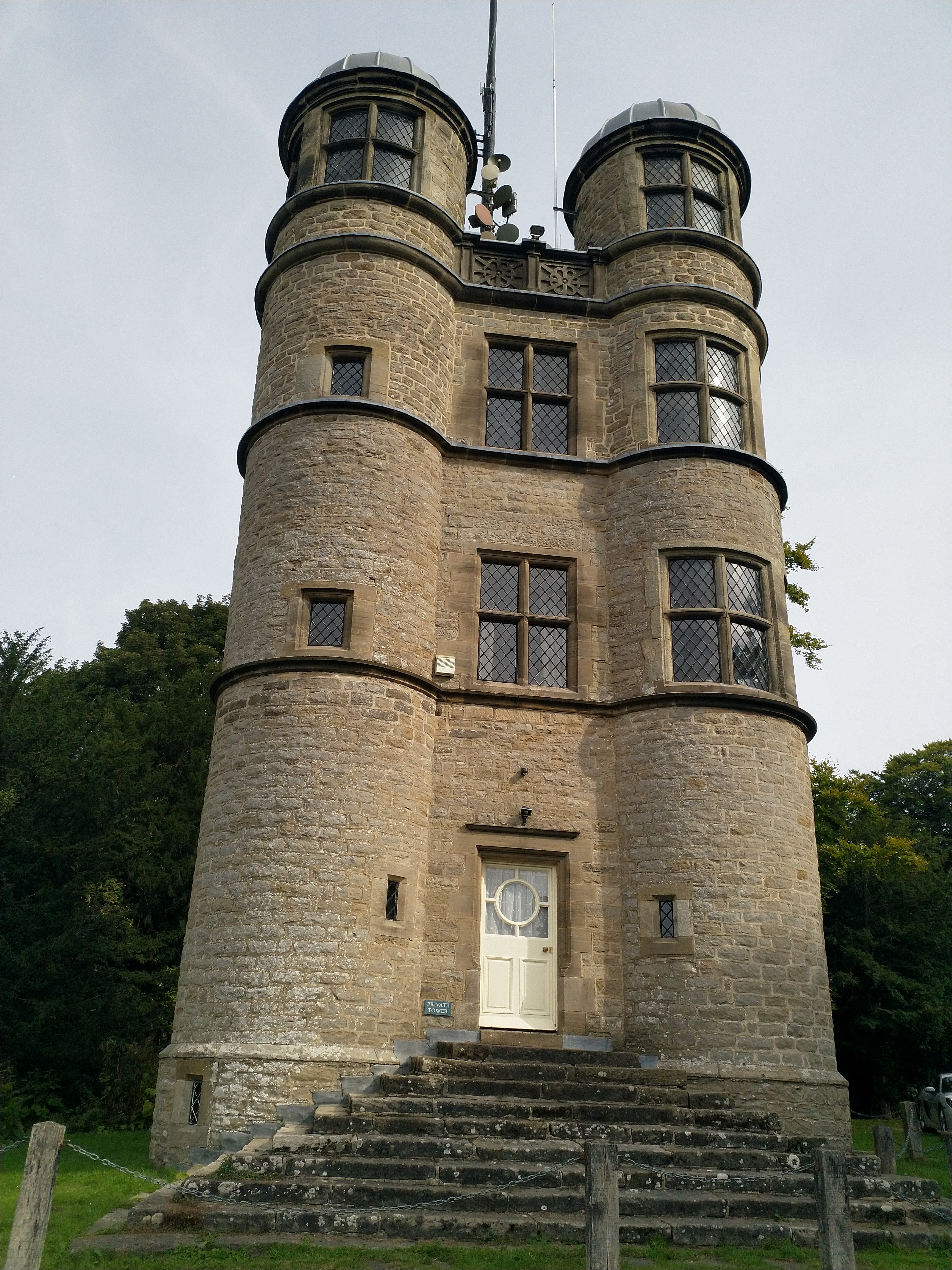 On a dampish Tuesday 12th October, eleven brave walkers assembled in Baslow for a walk through the magnificent parkland surrounding Chatsworth. The walk started by visiting Queen Mary’s Bower – traditionally supposed to have been built in 1570 for the benefit of Mary Queen of Scots who was imprisoned at Chatsworth. The way then progressed past the House and wound its way up to 16th Century Hunting Tower – bizarrely it is now available for rental via Airbnb! By this time, the rain had stopped and a fine view over the estate opened up for us while we enjoyed a short break. We then followed a high level path along Dobb Edge before dropping down into the valley. The morning finished with an enjoyable and convivial lunch. Thanks to Andrew and Sue for organising and leading the walk.