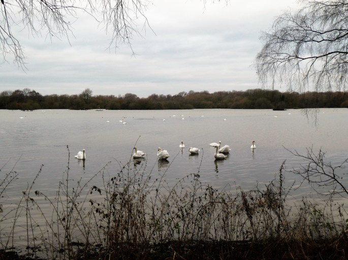 After a warming coffee, we set off on the walk – timing it nicely as the rain dried up. The walk took us round the lake and along the riverside before heading towards the Toby Carvery for lunch – arriving just as the rain began again!