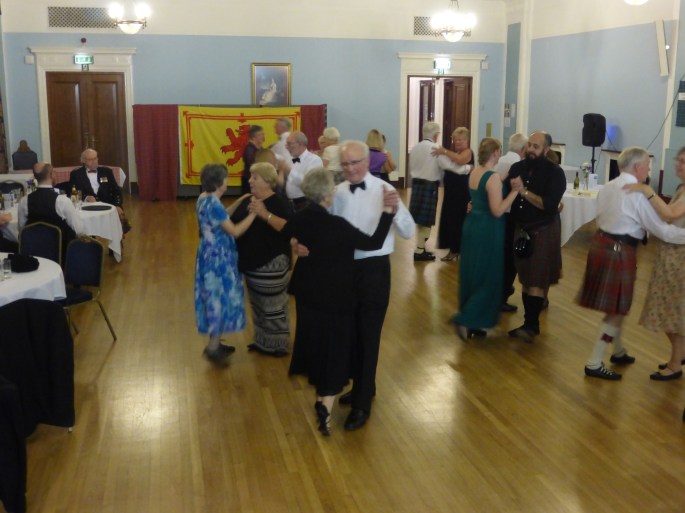 Members and friends gathered at the Nottingham Masonic Lodge for their annual St. Andrews Night Dinner and Ceilidh. We had an excellent meal – served by the attentive staff of the lodge and a fine toast to Scotland by Rosie Allen. The rest of the evening was devoted to a ceilidh, led by Schuggie Macinnes which had us all on our feet. Roll on Burns Night so we can do it all again!
