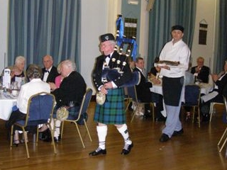 This year’s celebration of our national poet was a great occasion. A full house of 100 members and friends were welcomed by President David Potter and enjoyed an excellent meal. The haggis was addressed with great relish by Bob Logan. We enjoyed a thoughtful and erudite speech on Burns by John Brebner from the Derby Scottish Association. This was followed by the customary verbal jousting and wit of the ‘Toast to the Lassies’ and the reply, given this year by Roger Neal and Doreen Johnson. To top it off, we finished with a set of enthusiastically performed ceilidh dances, led by Andrew Morrison.